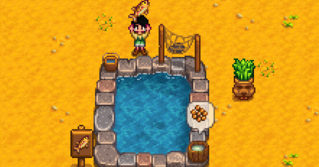 To increase your pond capacity, you must provide the following items requested to complete a quest. Furthermore, with each capacity upgrade, the items are harder to acquire since some are from geodes or in the mines. Refer to the table below for what you’ll need to complete a quest for capacity expansion: