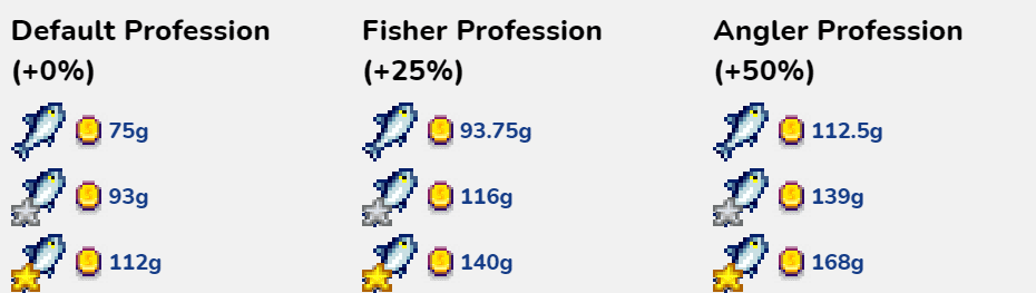 A salmon is a type of fish that is obtainable through Fishing. It can be found during fall in the River during all kinds of weather. It can be sold at a base price of 75g, 93g for the silver quality, and 112g for the gold quality. A salmon can be caught in the size range of 24-66 inches. When consumed, you will recieve a boost of 38 energy, and 17 health.