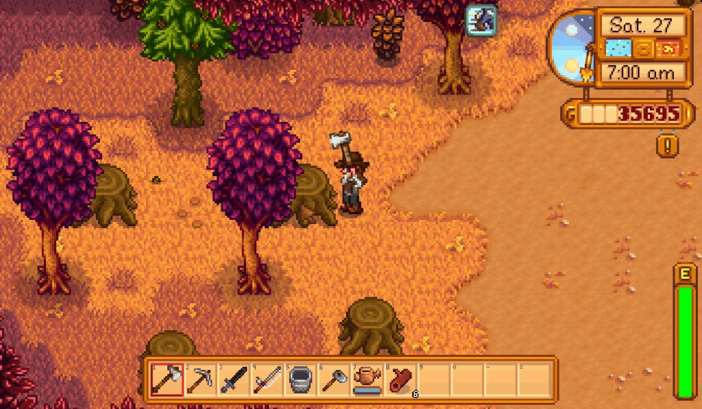 A good tactic to level foraging is to create a field of trees using Seeds. Utilize the Tree Fertilizer – unlocked at level seven of foraging – to expedite this process dramatically.