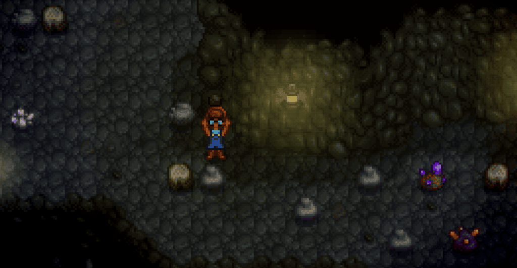 Regular, dirt-colored rocks that match the color of the ground and are destroyed in one hit don’t grant any experience. Similarly, the large boulders that take over five hits, puzzlingly, don’t grant any experience either. Mining these two types of rocks on your farmstead, outside of the mines, does grant one point of experience.