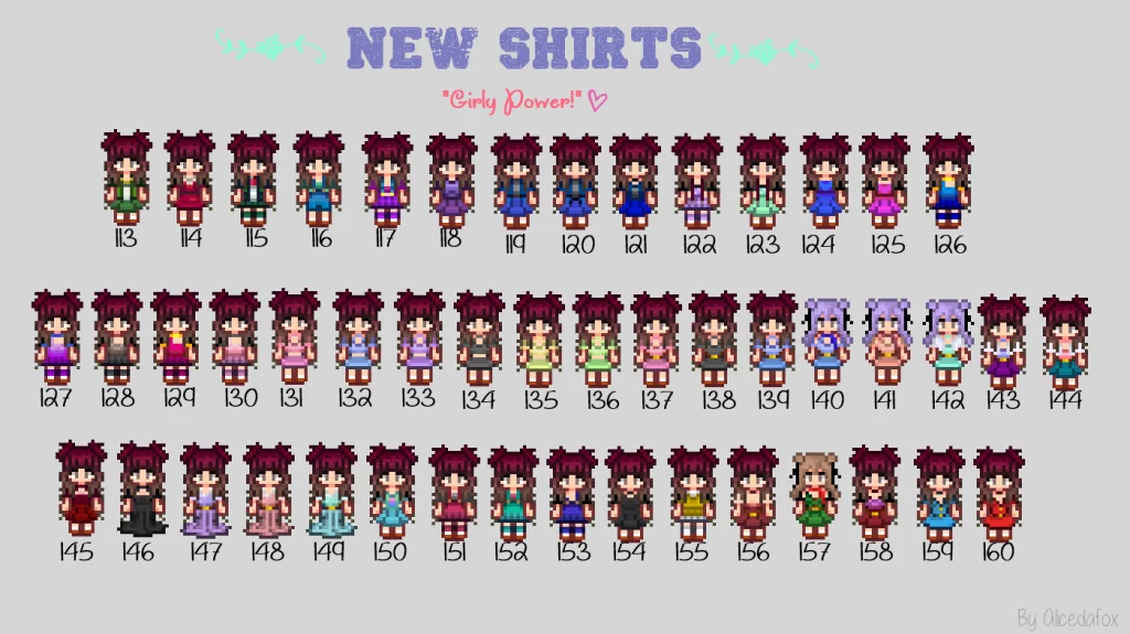 This mod provides you with a substantial amount of new shirts and skirts for your farming characters to get. It’s pretty simple and the design is nothing fancy, but it’s decent enough to keep your characters distinguishable and unique.